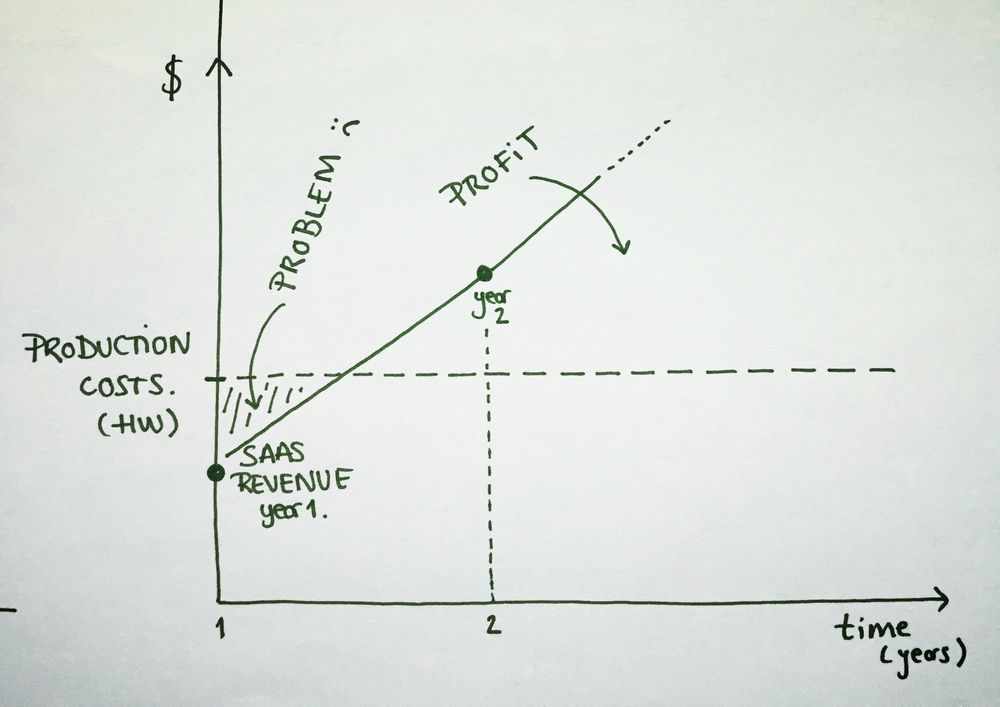 But it also makes us happier than anybody because we transformed a SAAS model, into a double-edged business with an up-front revenue from the hardware that provides a stream of money to sustain manufacturing expenses, and a SAAS revenue from the software that brings scale and long-term profits.