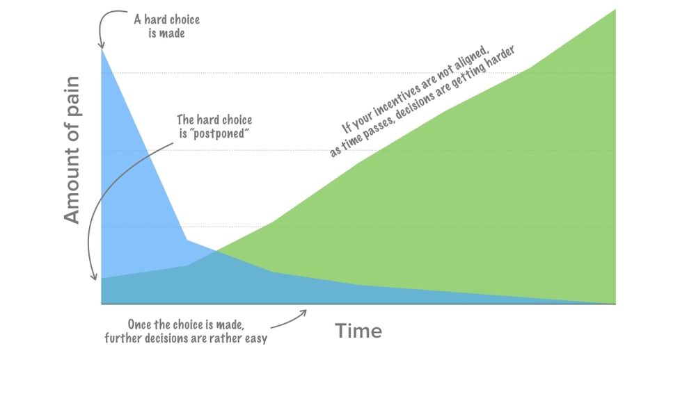 Because once the choosing moment has passed, more decisions will still need to be made. If you’d chosen to say “no” in the first place, your decisions would now be clear, and straightforward. Your incentives would be aligned.