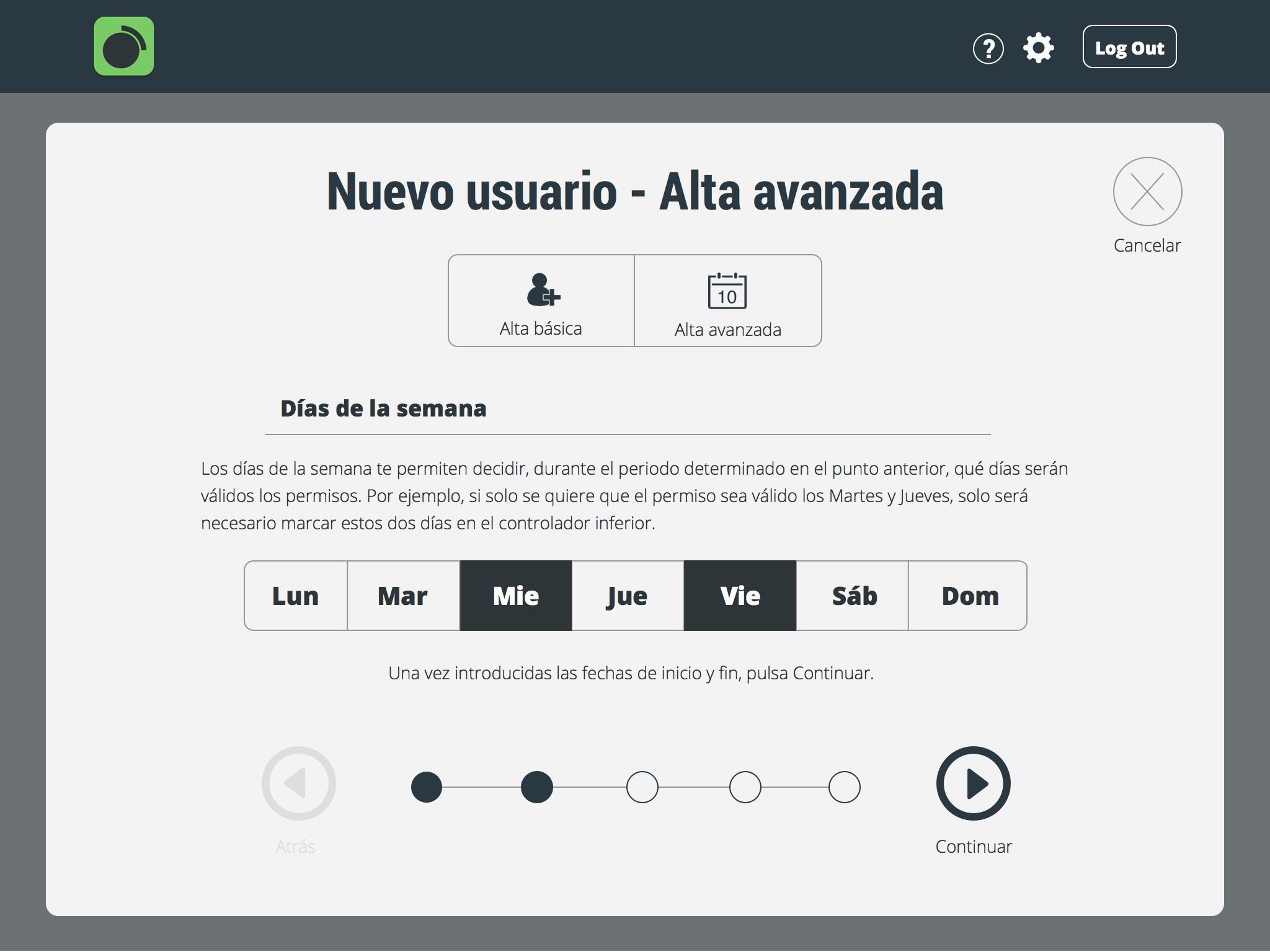 So, to continue with the example above, you might use Basic mode for the Manager, granting unlimited 24/7 access. However, consider a new freelance employee on the 2nd floor who is only permitted to be present on Wednesday and Friday from 09:00 to 17:00. To set this up, simply activate the advanced mode, follow the steps, and you’re all set.